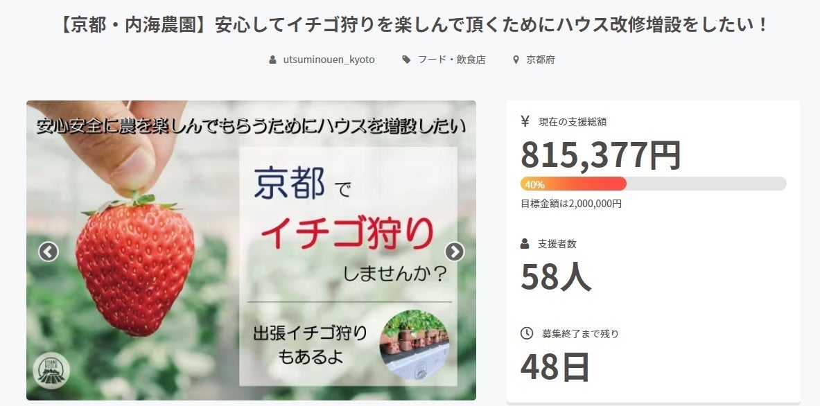 「【京都・内海農園】安心してイチゴ狩りを楽しんで頂くためにハウス改修増設をしたい!」のプロジェクトオーナーのutsuminouen_kyotoうつみ農園代表の3代目内海彰雄と申します。よろしくお願いします!