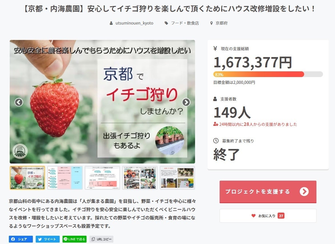 達成率83%、1,673,377円、149名のご支援者が御来援!