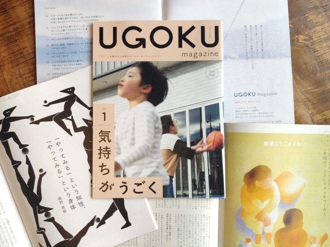 今年、UGOKUマガジンというフリーマガジンを発行しました。体をうごかすと、気持ちもうごきますよね。心もうごくし頭もうごきます。うごいている人や場所を見つけ、「うごく」ことのおもしろさを探求する雑誌です。うごくがテーマなのに、「無理にうごかさない」というコラムがあったり、めちゃくちゃ面白いです。
