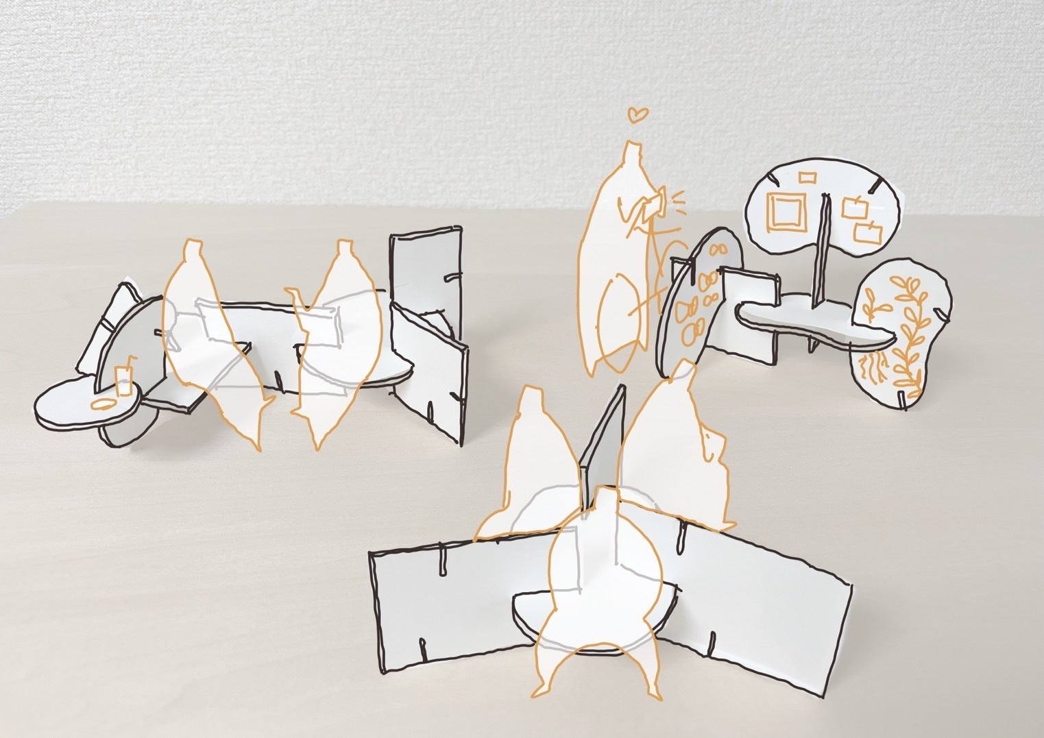 偶然の出会いによって、いつもはただすれ違っていた人とも、我々が考えたファニチャーをきっかけに会話が広がってゆく…そんな人と人との距離が近づくことでリアルな繋がりが生まれる楽しい空間を一緒に作りませんか?
