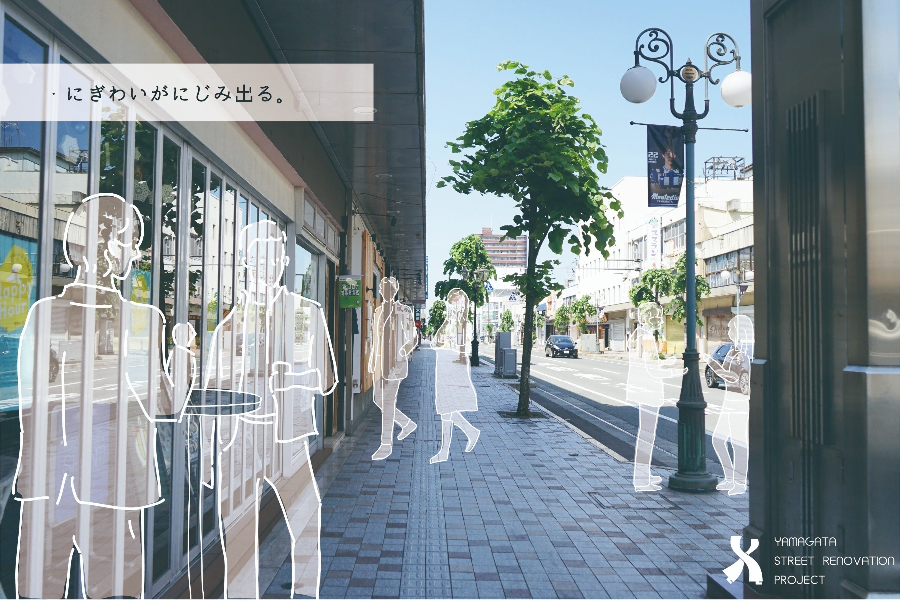 山形駅からもほど近く、昼は電車待ちの学生たちが、夜は飲みに来た大人たちが、心地よくたたずむことができる空間をつくろうとしています。