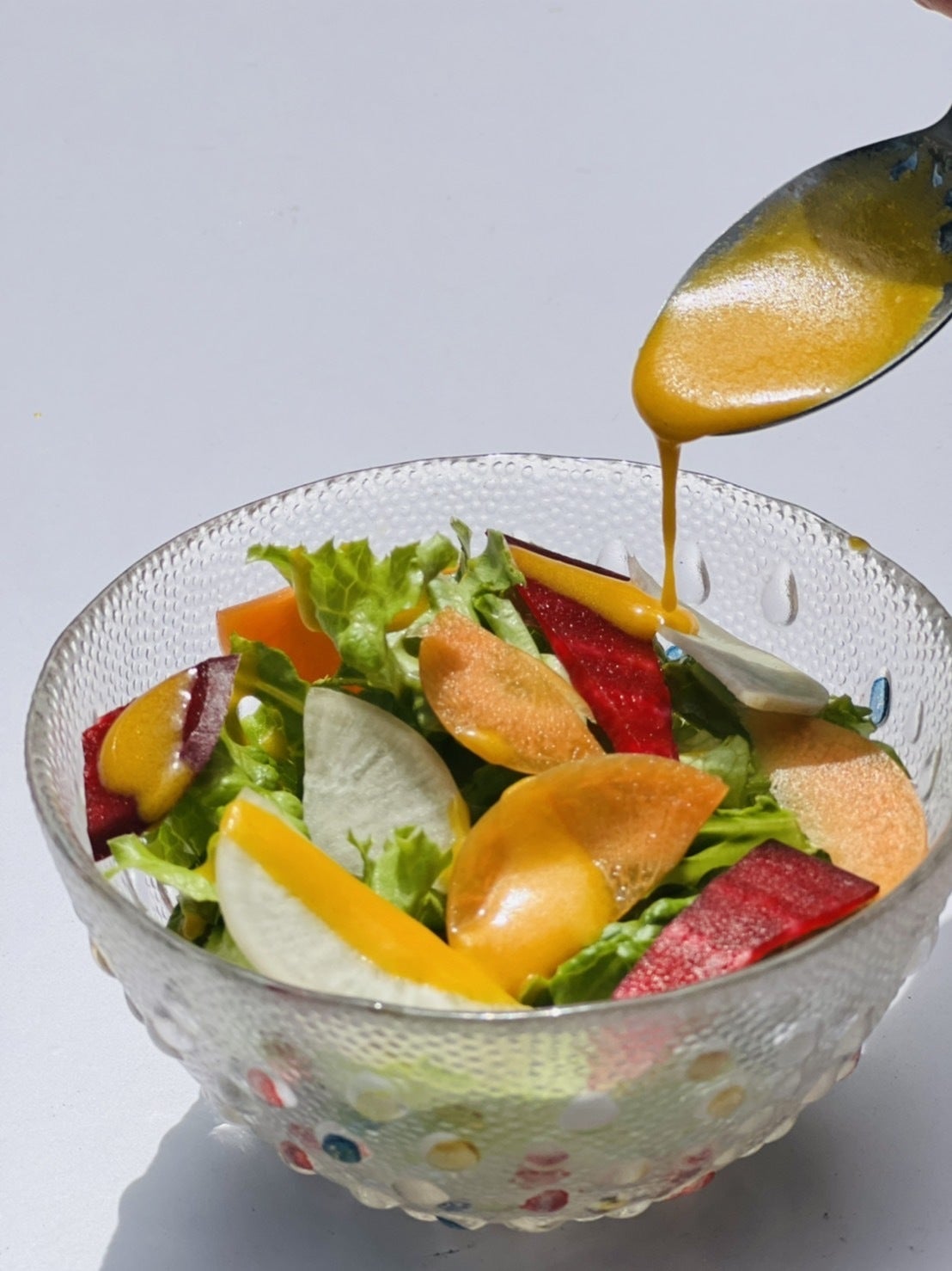 今回作る人参ドレッシングは、ドレッシング自体も健康・ヘルシーで、かけることでお野菜をたくさん食べたくなるドレッシング。