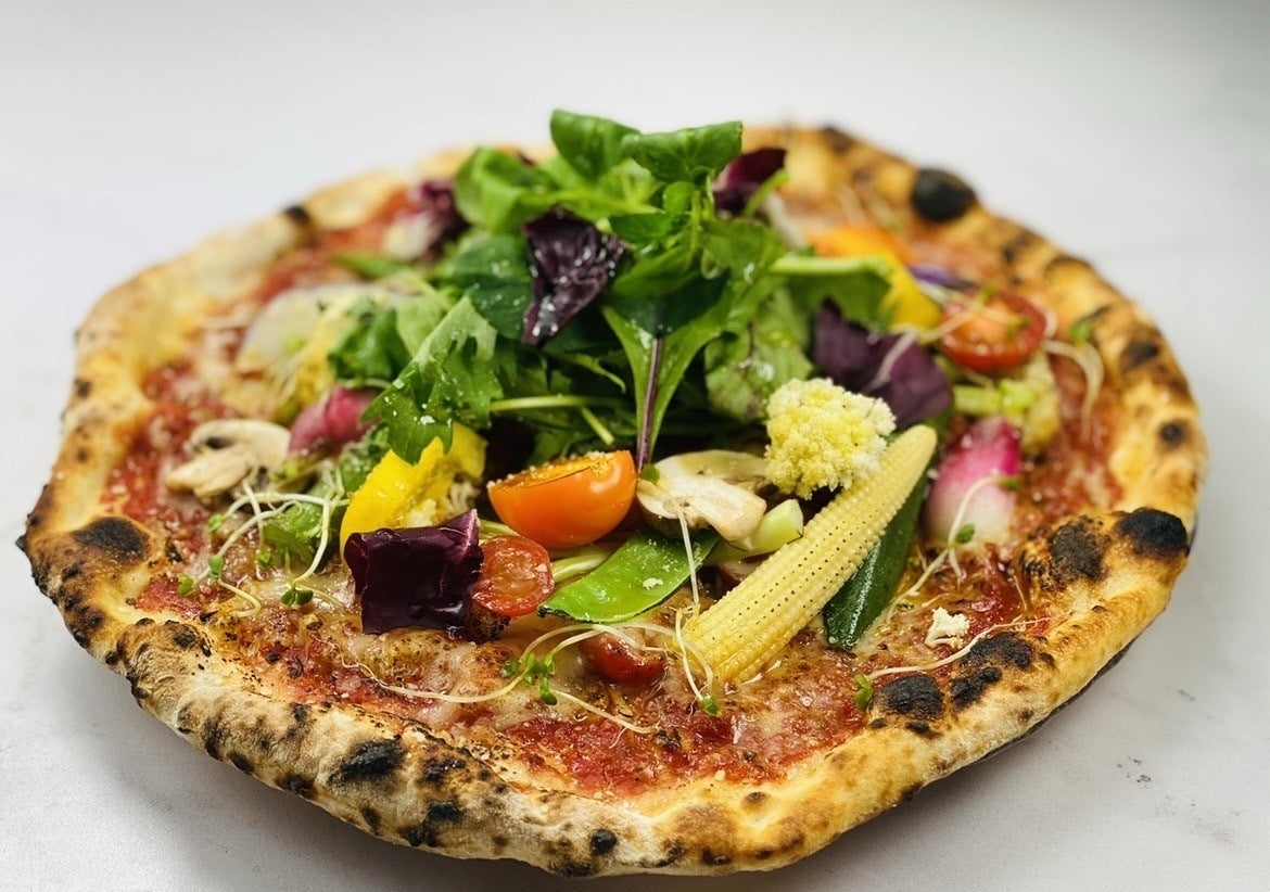 有機野菜のピザを初め、旬の野菜やフルーツを使ったドリンクなどを提供し、見た目もおしゃれにSNS映えする感じに仕上げて、ジャンキーそうに見えて味もしっかり食べ応えもある。