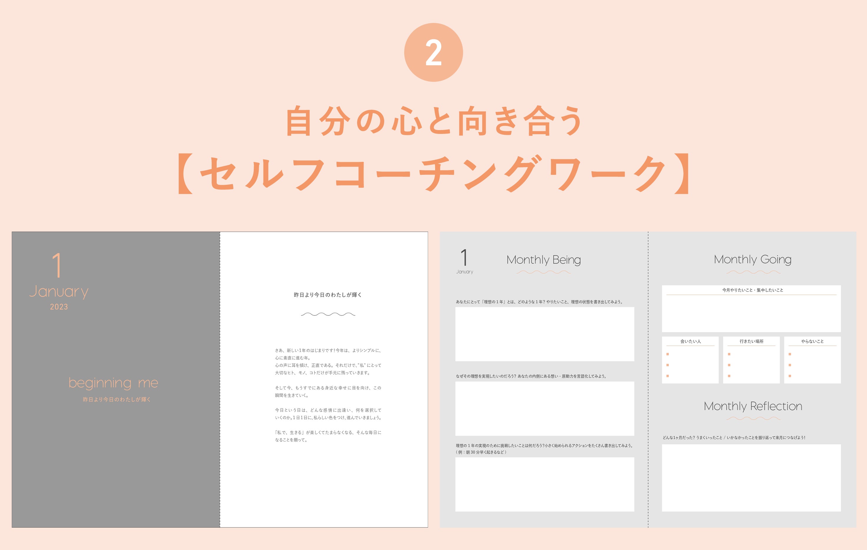 自分の本当の願いを知ることは、理想の未来を実現するために欠かせないステップ。Me手帳では数陽学に基づいた毎月のテーマ・メッセージ・セルフコーチングワークを通して、自分の心と対話し、心の奥にある願いに気づくことができます。