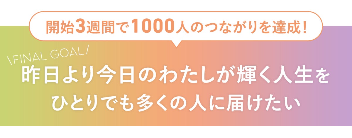 私たちの願いは、ひとりでも多くの人へ、昨日よりも今日のわたしが輝く人生をお届けすること。そして、そんな人と人が手を取り合い、笑顔と愛にあふれる世界をここから広げていくこと。そのために、最後までみんなと挑戦を楽しみたいです。