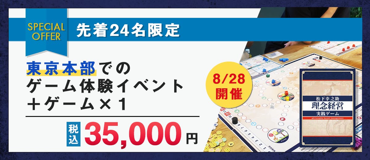 松下幸之助が大切にしてきた「経営哲学」そして「人の活かし方」を体験し、人を成長させ、強いチームをつくることを目的とした、これまでにない新しいボードゲームです。お金で買うことのできない体験は、あなたやチームに大きな影響を与えてくれるはずです。