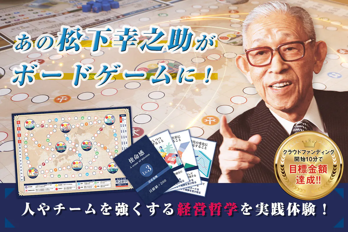 松下幸之助<理念経営>実践ゲームのクラウドファンディングが開始10分で目標金額を達成しました!