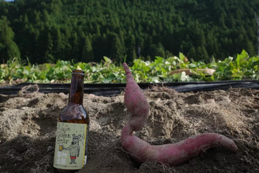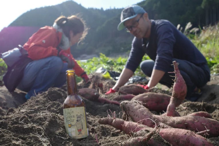 傷があったりやきいもには大き過ぎる加工用の金時いもを使ってグットウルフさんとさつまいものクラフトビールを作っています。