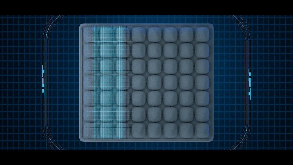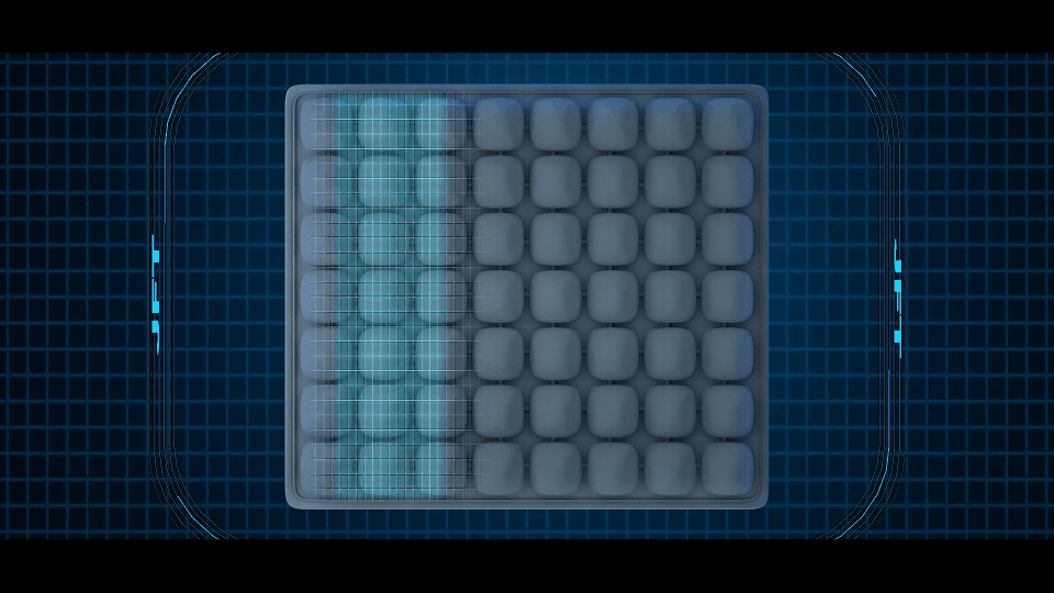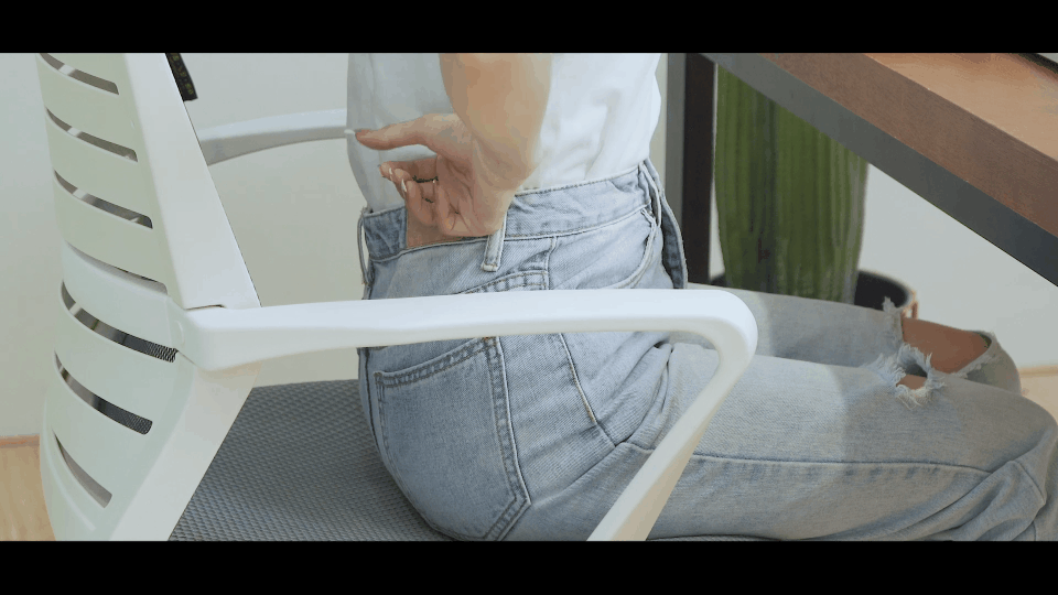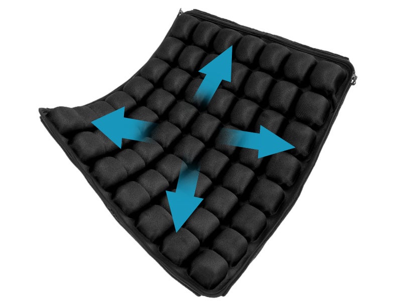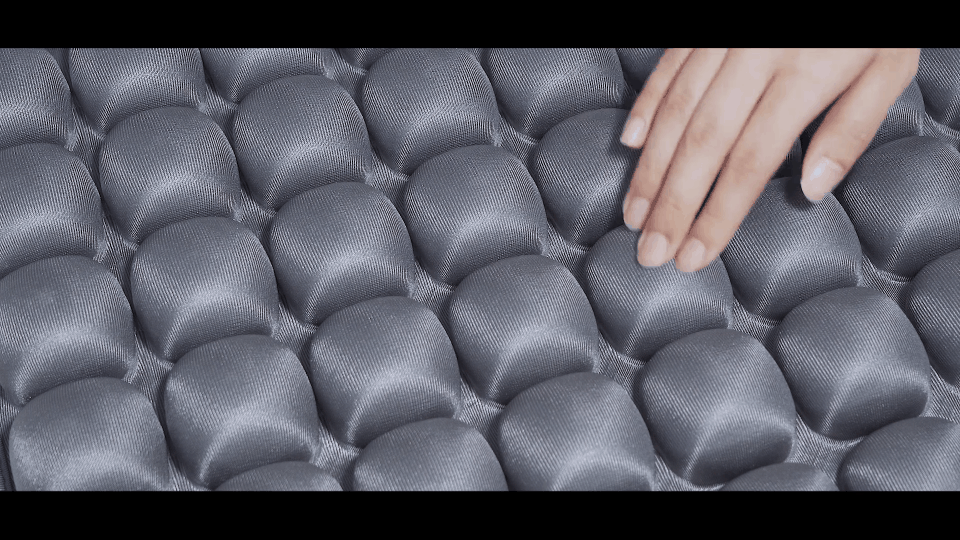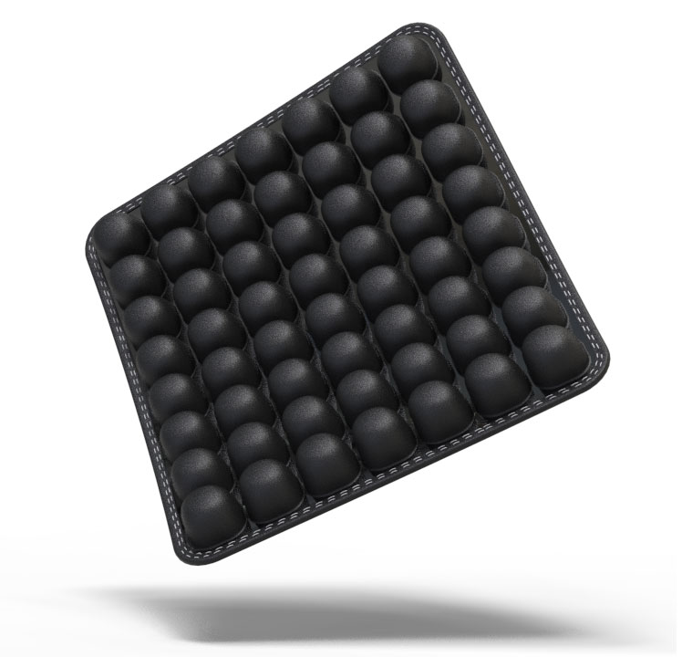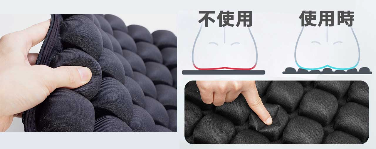 56個のエアセル同士が中で繋がっているので、座った時の圧力により瞬時に中で空気が移動、圧力を分散し常にベストポジションを確保します。