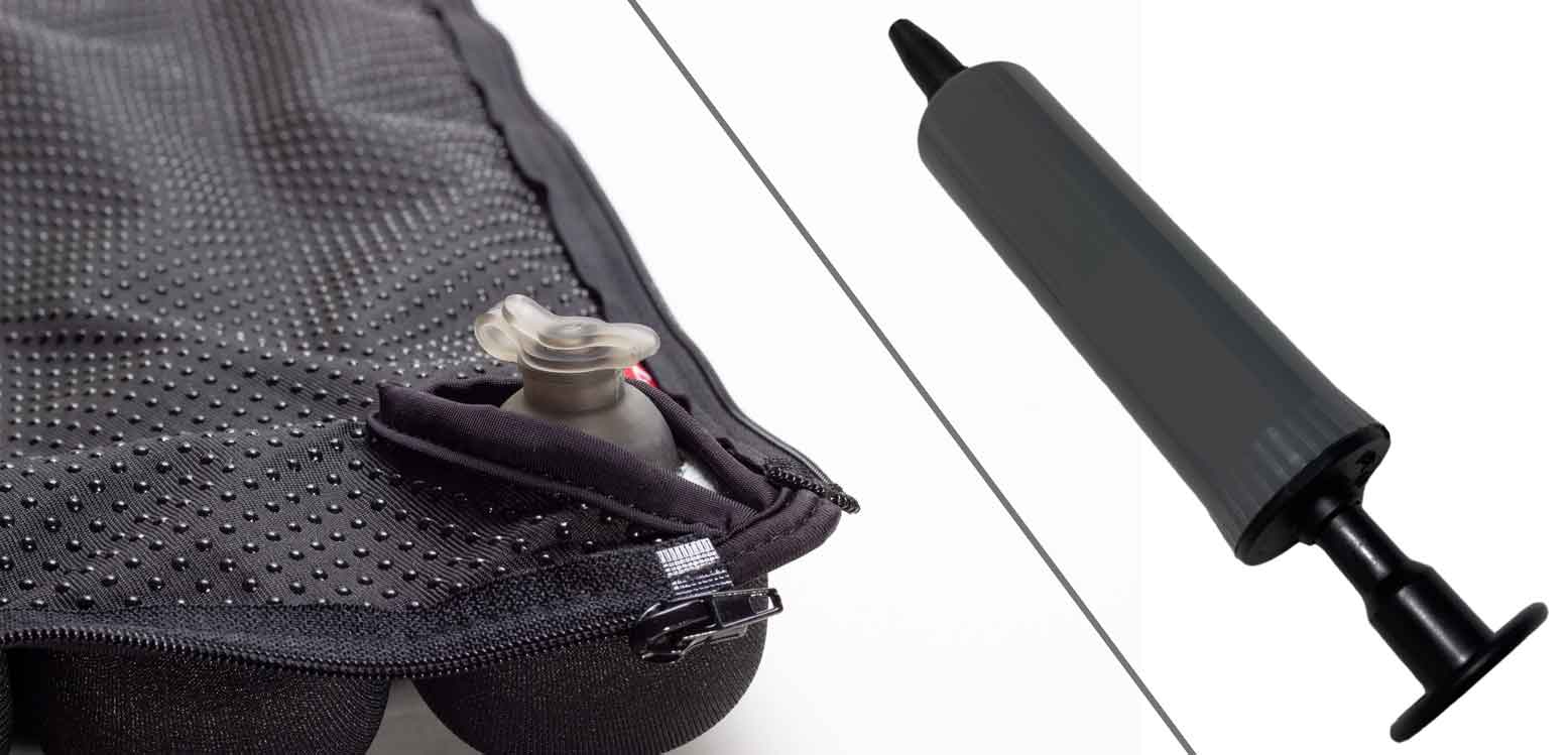 付属のエアポンプで本体空気穴にエアーを入れ圧力を調整できます、あなたのお好みに合わせて固めにも柔らかめにも調整して下さい。
