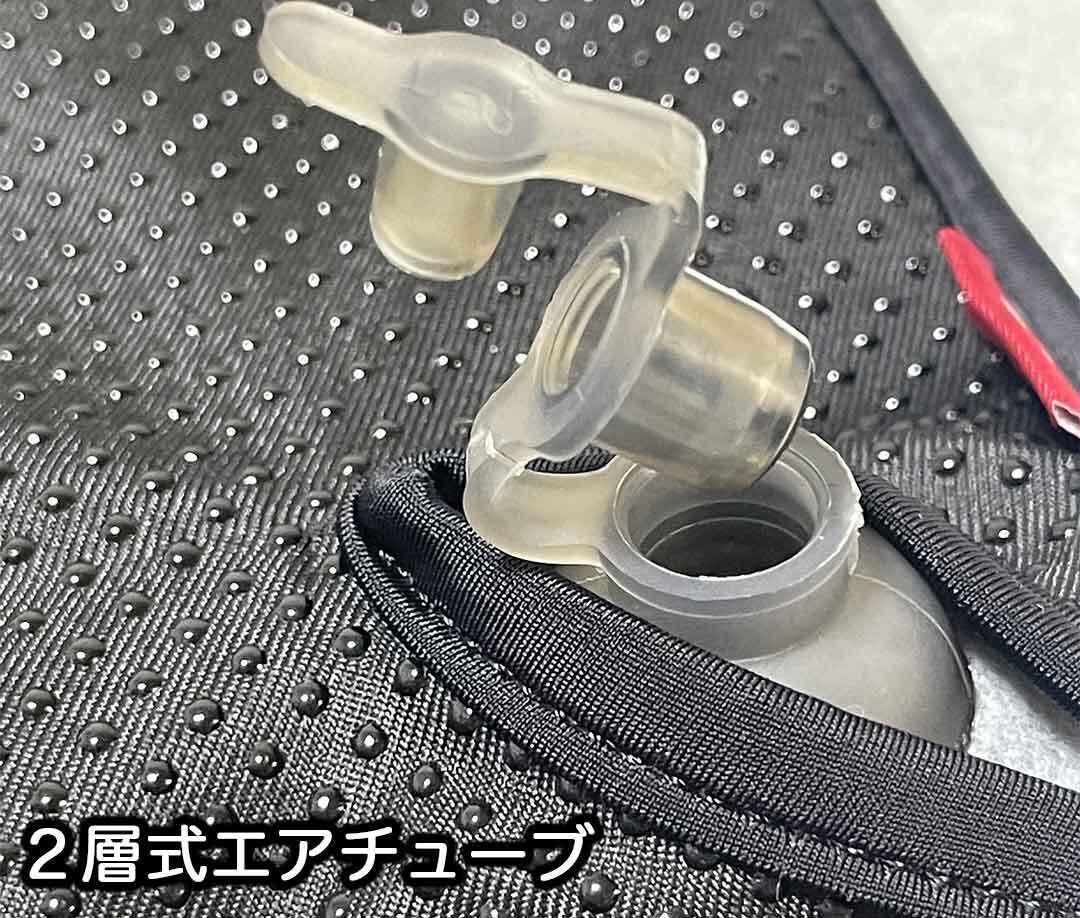エアチューブは2層式、上の穴からはポンプで空気を注入、下を開ければ中の空気が排出できます。