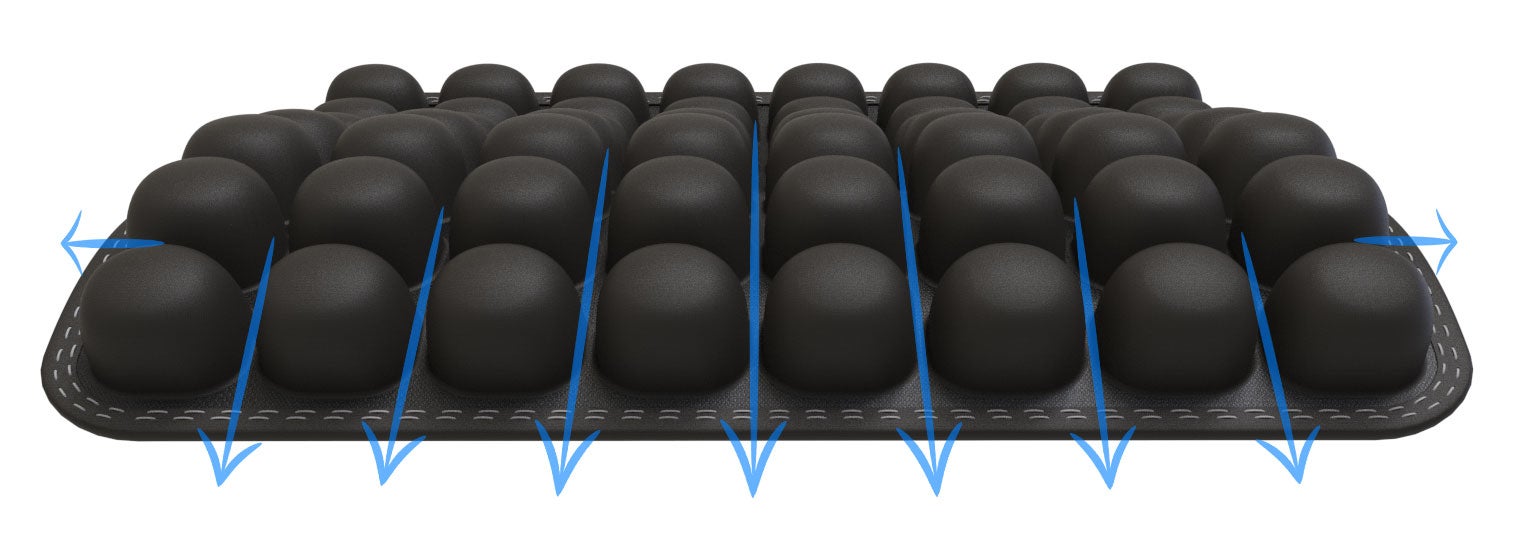 56個のエアセルの間には空気が通る溝があり、長時間座っていても蒸れにくく熱がこもらないように考えられています。