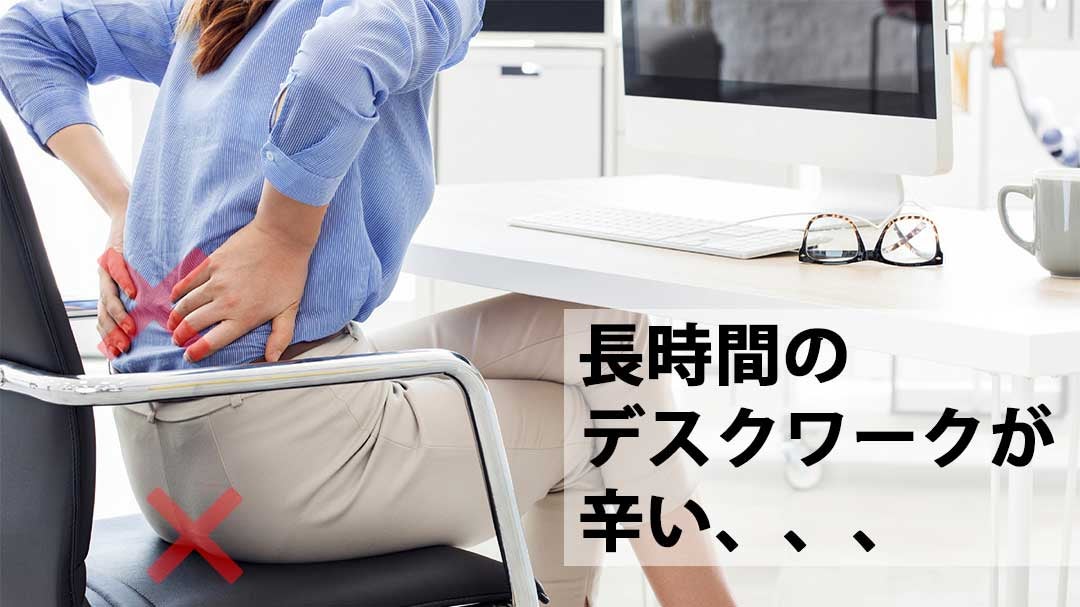 長時間のデスクワークや作業、勉強、車の運転などで身体がガチガチ、コリコリ、お尻や腰が段々辛くなり座ってられない、集中できない、誰しもあるそんな経験。