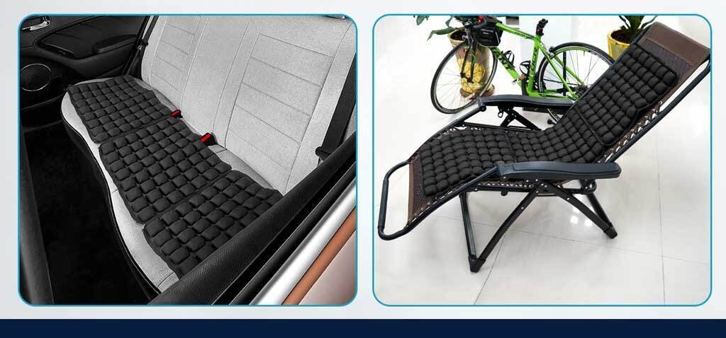このエアクッション、お尻に敷いて使う事が殆どですが、実はファスナーでもう一つ繋げて背中にも使うと抜群の座り心地をキープ致します!