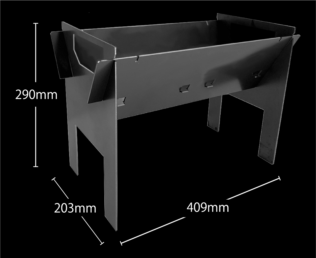 大容量の焚き火台にも関わらず、収納サイズは専用ケースの約419×297×12 mmに収納可能。
