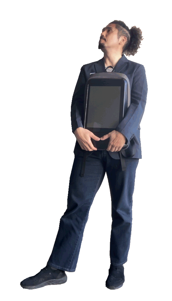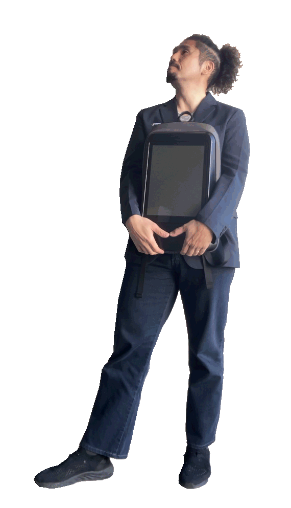 LEDパネルを使ったサービスを考えていた時に、このLEDパネルを搭載したバックパックに出会いました。今まで、同様なバックパックは見かけたものの解像度や照度も納得できるスペックには至っておりませんでした。