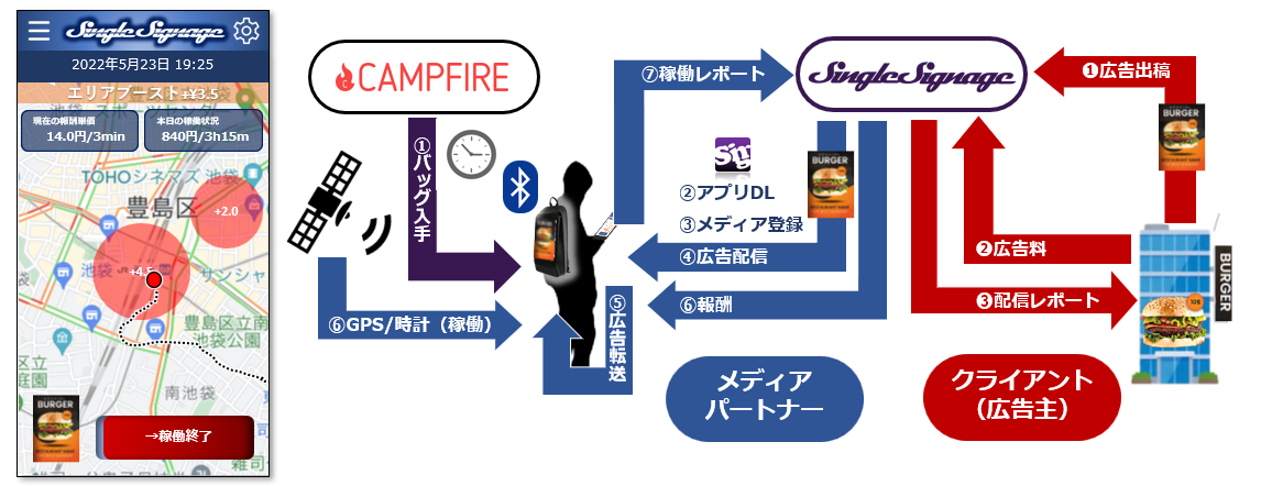 「MUKIJIKU-4DX」をはじめとするLEDバックパックを使ったパーソナルデジタルサイネージプラットフォームアプリケーションの開発を行います。