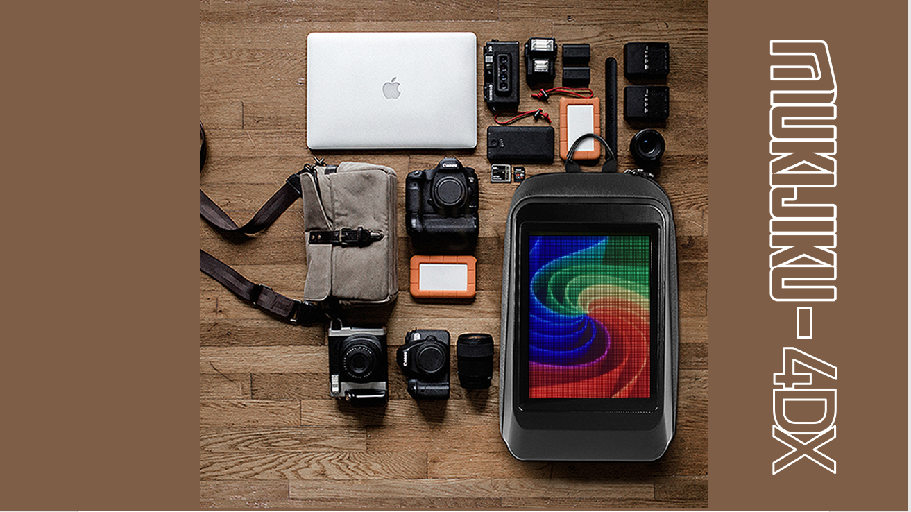 横96ピクセル×縦128ピクセルの高解像度フルカラーLEDパネルを搭載した、フラッグシップモデル「MUKIJIKU-4DX」をリターンの商品といたします。LEDパネルの照度は900cd/m2あるので、夜間や室内はもちろん、日中の屋外でも高い認識性を誇ります。Bluetooth通信対応しており、カスタマイズアプリ「LED SPACE」を利用してスマートフォンの画像を転送して表示させることもできます。