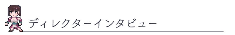 企業でのディレクターを務める以前には、個人開発で『ユトレピアの伝説』『12亜神伝』といった全オリジナル素材を自作してのRPG複数作品を完成させてきた経験と、個人開発・企業でのディレクター開発通して持ち続けた、着手した作品は必ず完成させる、という気持ちを、再び個人開発に戻ることとなった本作にも反映させ、必ず皆様のもとへ届けたいと思っています。