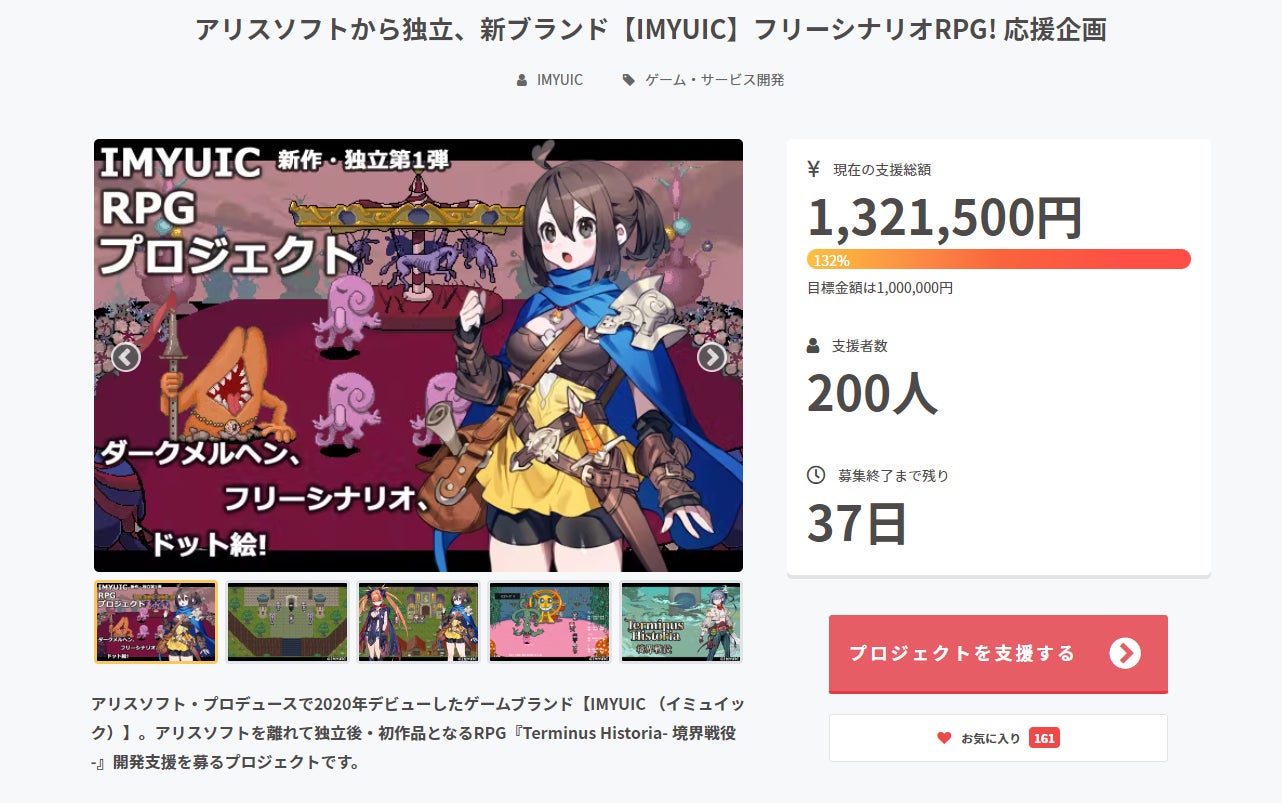 CAMP FIRE様にてゲーム開発のためのクラウドファンディング実施中の、
