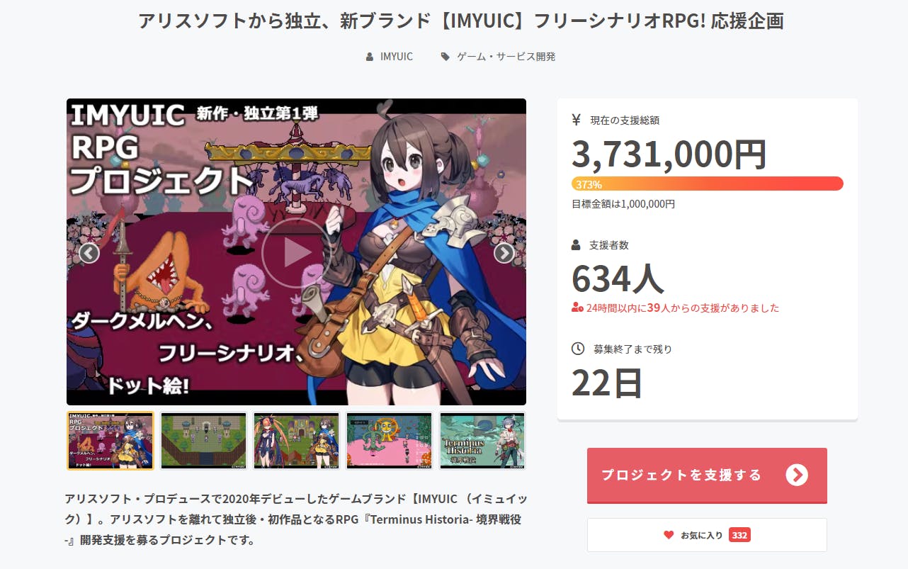 初期から支えて頂いた皆様、新たにご支援頂いた皆様、また、SNS等で応援してくださっている皆様のおかげです。