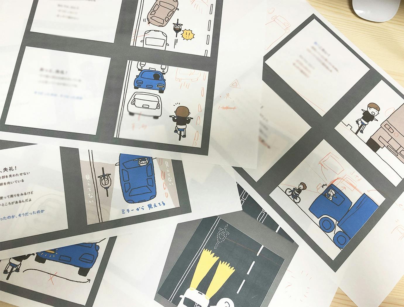 この絵本は、私が自転車や車に乗ることで感じた私自身の想いを元に作っています。そのため、私の住む場所やルールに限った話になってしまっているかもしれません。多くの方に役立ってもらう本にしていきたいので、車・自転車の専門家や、交通ルールに携わる方にも見ていただきながら、最終完成に向けて微調整中です。