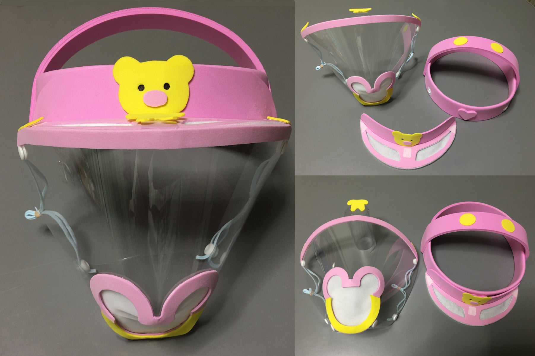 テレビで見かけるアクリルマスクの様に、口元が曇りや結露で汚らしくならない。看護師や介護士さん達がマスクの上に二重にフェイスシールドしているあの二度手間とかさばりを排除して耳掛け式で見た目もスマートです。幼児用はヘッドギア付きで3分割できます。他の製品も組み立て式、あるいは折り畳み式で持ち運びに便利ですよ。