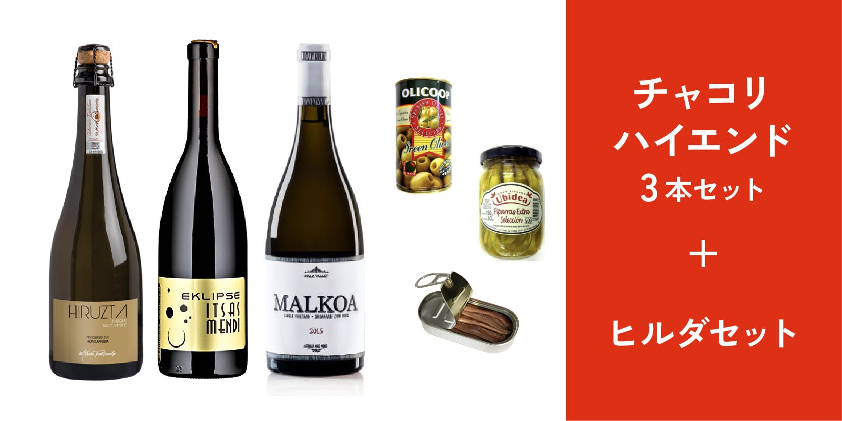さらに、チャコリに加えてバスクのおつまみ「ヒルダ」をつくれるセットを一緒に届けたいと思います。バスクのバルでこれを置いていない店はない定番ピンチョス(一口サイズのおつまみ)で、アンチョビ・オリーブ・酢漬けの唐辛子を串で刺したもの。甘味、塩味、旨味、苦味、香りがひとつになった串を口に放り込んだら、、、これ以上最高な一口おつまみを僕は知りません。