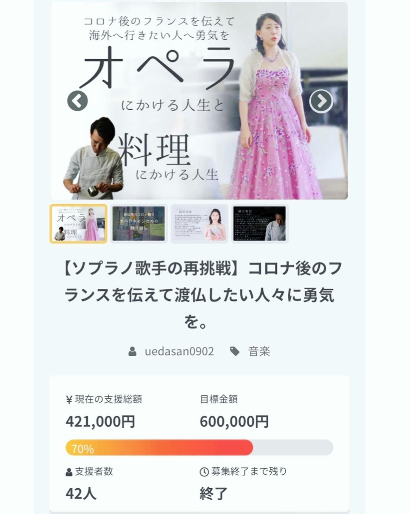 総支援額は42万1000円まで集まりました!