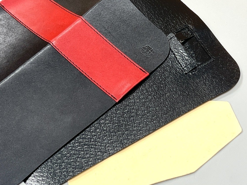 ケースを押し広げた時に、親指が痛くならないよう、革のあたりを調整しています。