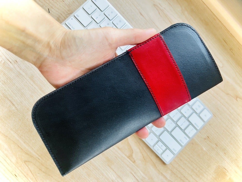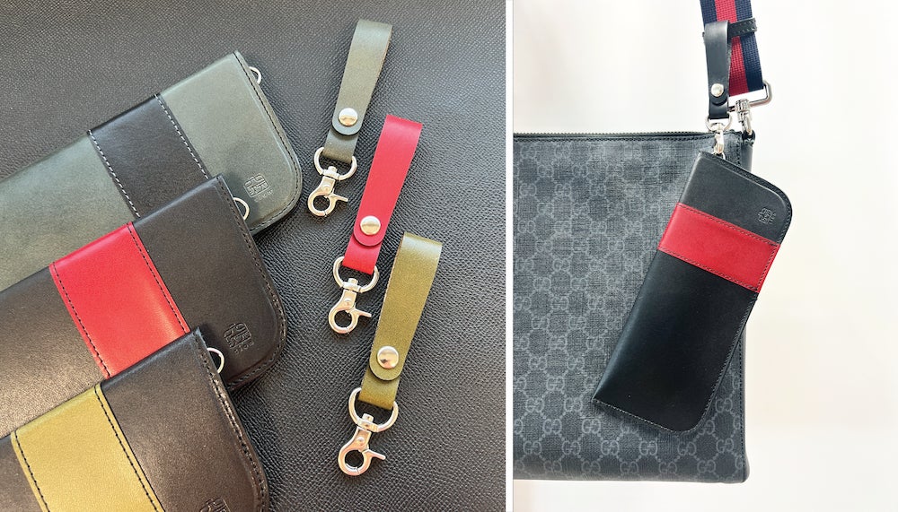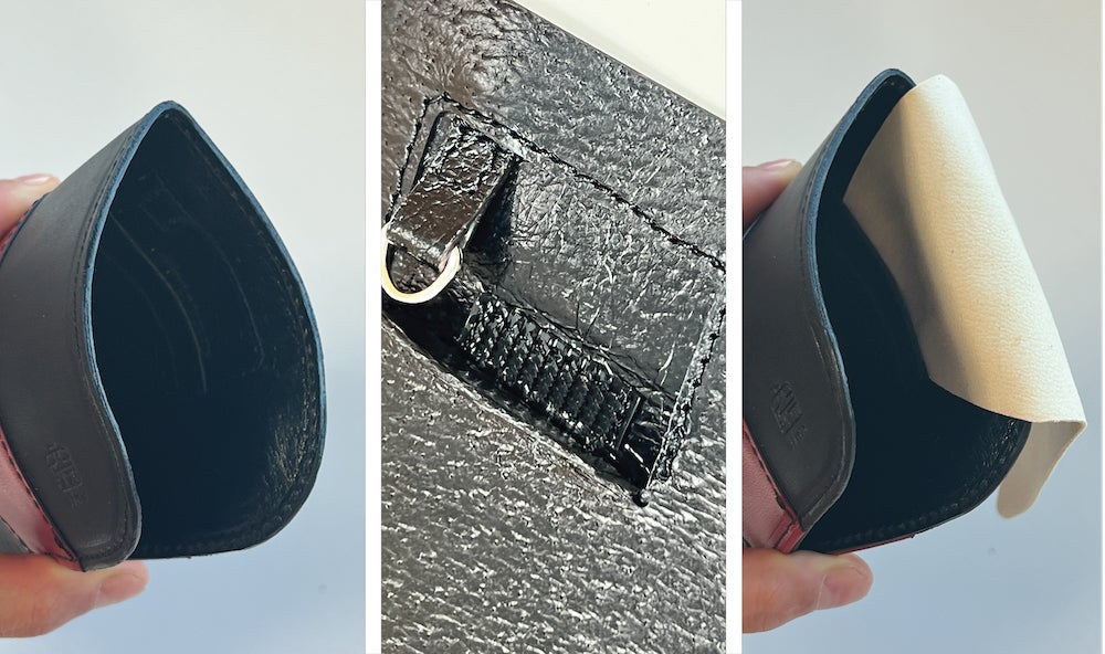 利益を追求するだけなら合皮一択なのですが、「良いものを長く使いたい」という顧客の期待に応えたいので、表革も、内装も、めがね拭きも、本革にこだわって製作することにしました。