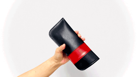 内側にツルツルのアメ豚革を使用していることにより、めがねが滑りでてくれるので、一瞬でめがねが取り出せます。