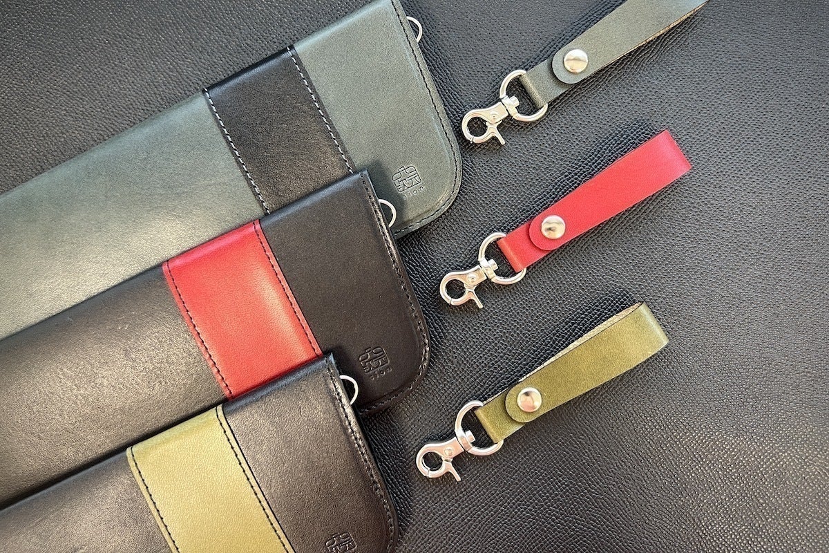素材:牛革(栃木レザー)、豚革(アメ豚)、Pet-G樹脂プレート、マグネット、Dカン