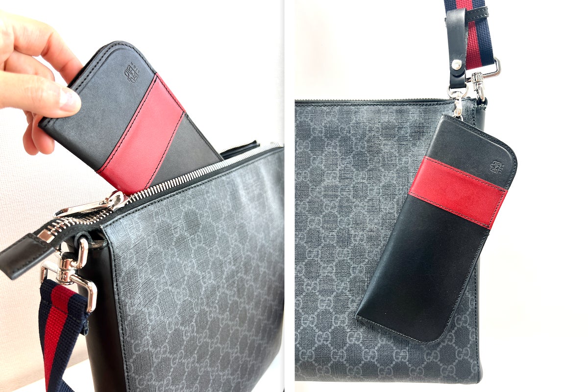 めがね拭き&レンズクリーナーを持ち歩くためのケースとして携帯すれば、ちょっとしたお洒落さんですね。