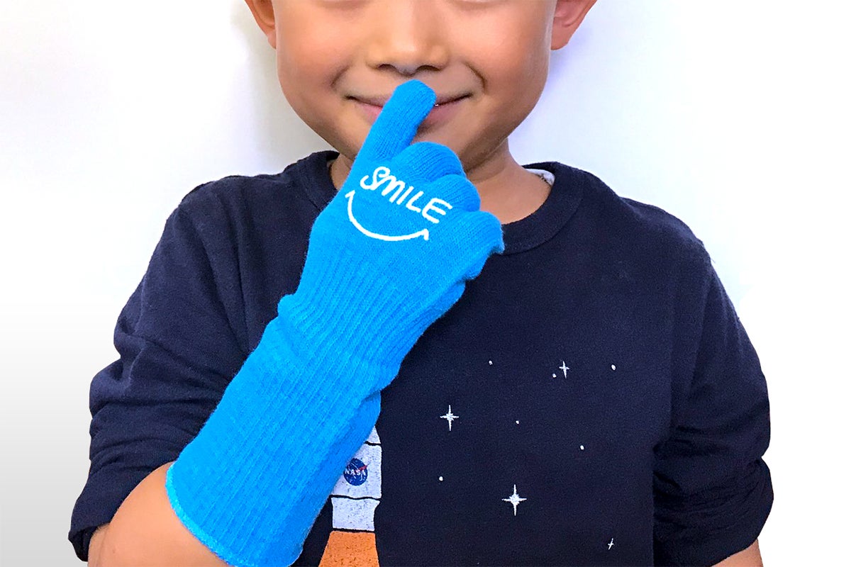 コロナ禍での感染予防グッズとして開発した幼児向けの手袋です。
