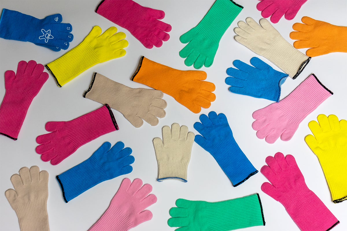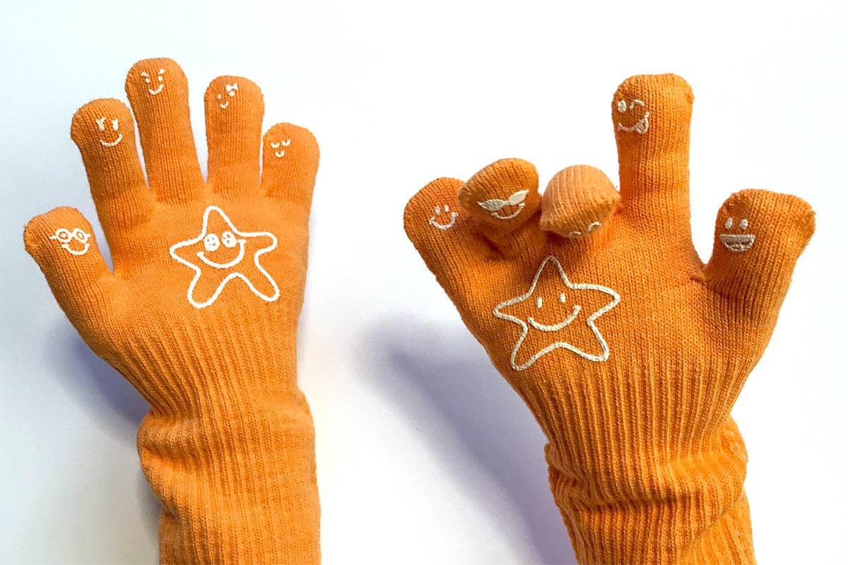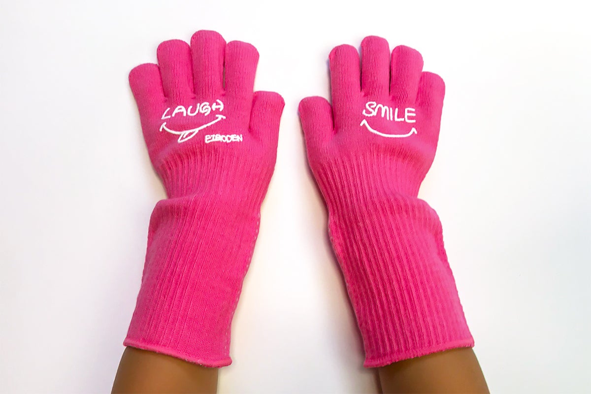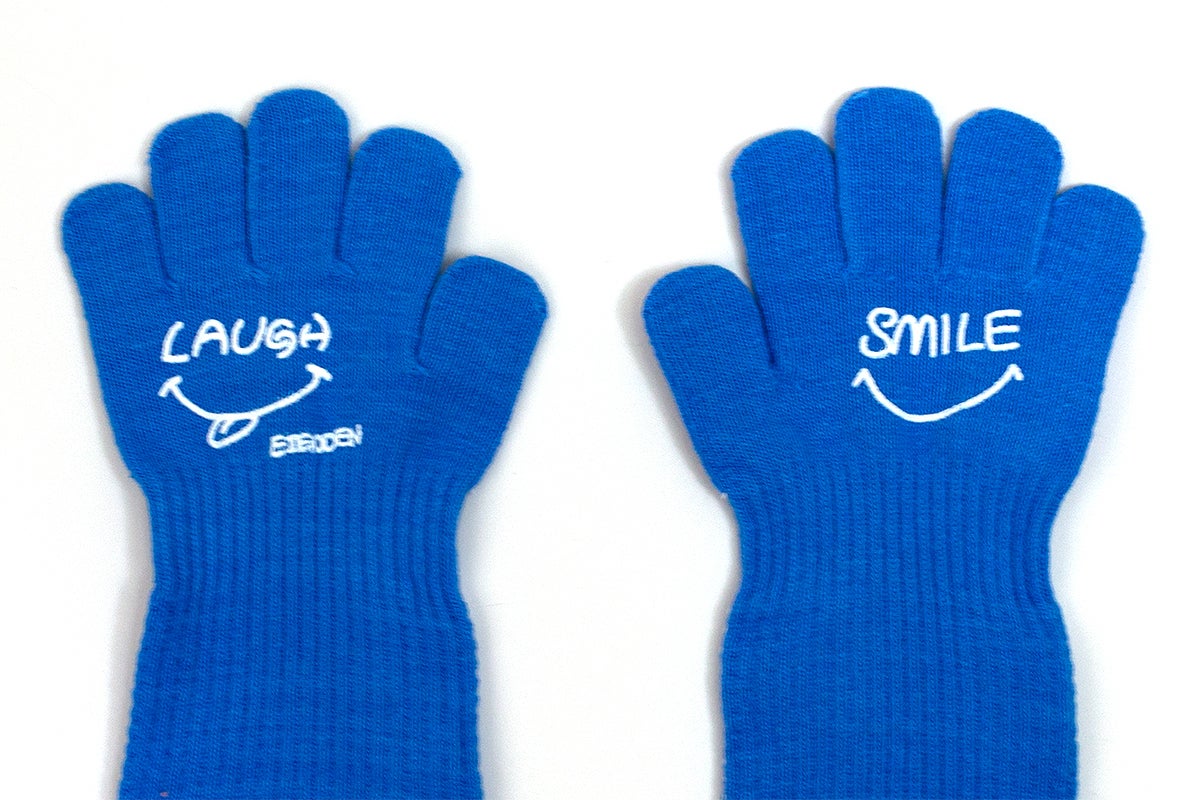 試行錯誤の結果、普通の手袋よりも手首から上腕までが長く、脱げにくいデザインになりました。