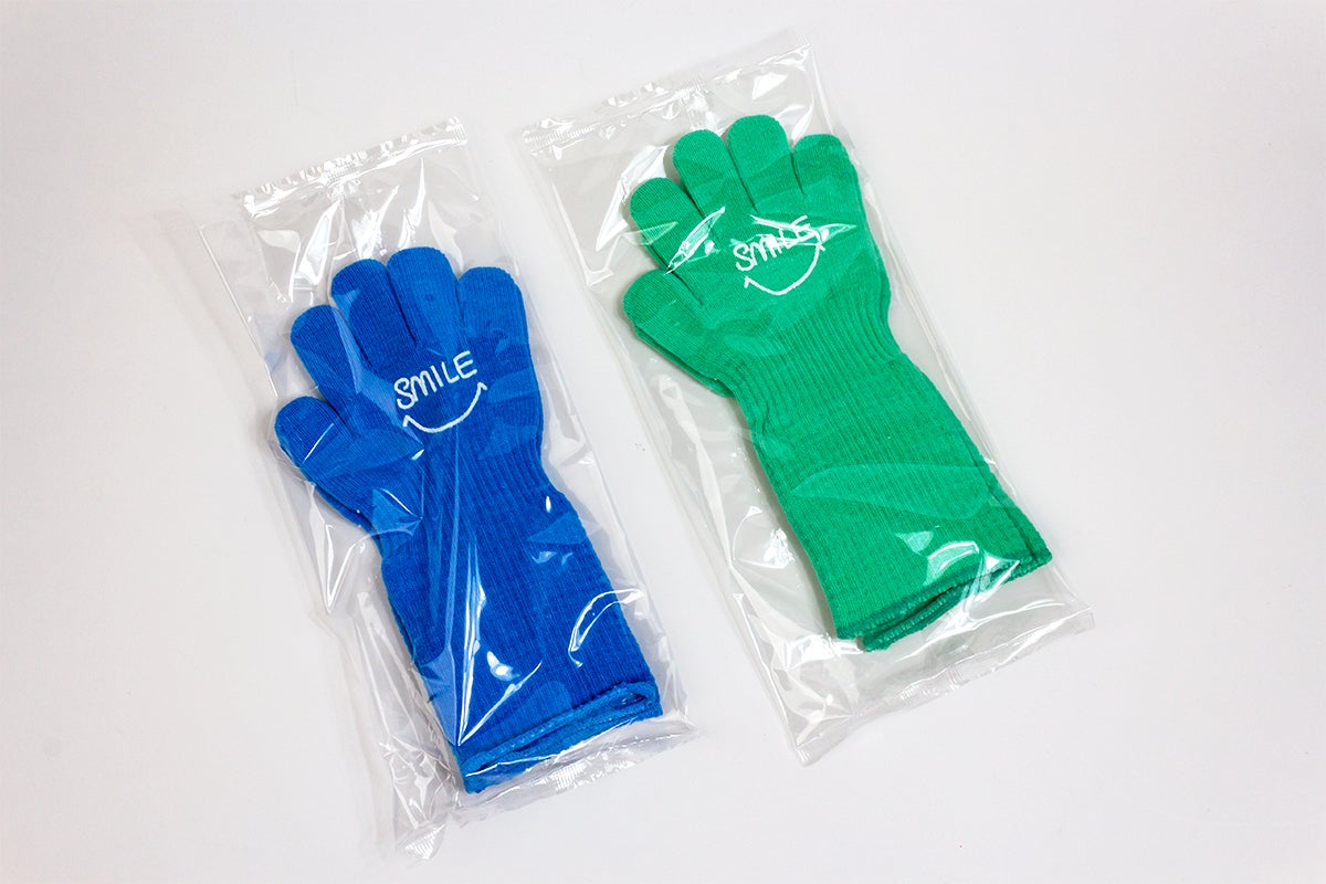 繊維素材への抗菌・抗ウイルス加工は手間と時間がかかるため費用増となり、提供価格が1双約500円と予想以上に高くなってしまいました。抗菌・抗ウイルス加工を除いた手袋であれば製造工程が少なくなり、コスト減となり、もう少し安価にすることができます。
