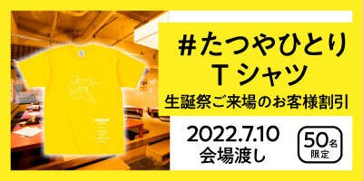 2022/06/03 15:43「たつや生誕祭飲み会ご招待」リターン購入者専用リターン。生誕祭ご来場のお客様にひとたつやTシャツを割引価格で。↑このリターンですが、サムネ画像では「50名限定」となっているのに設定で限定数を20で公開してしまったので、限定数を50に修正しました。特に内容の変更はありません。 もっと見る