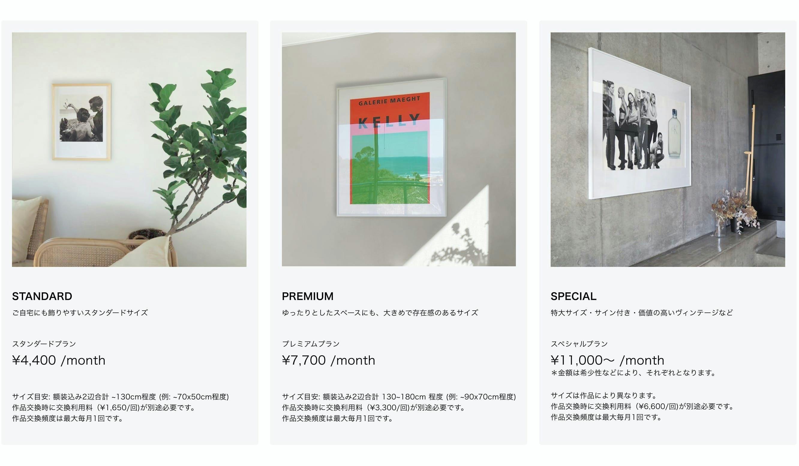 作品のサイズ、希少性に鑑み、3種類のプランをご用意しております。