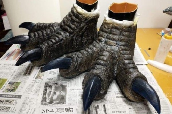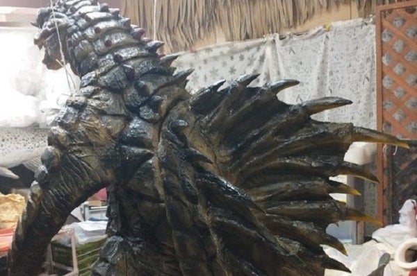 10月には蛇龍着ぐるみヘッドと手足ができて、モールドと黒下塗り作業後、11月には背鰭、尻尾が付きました。-スタッフより-
