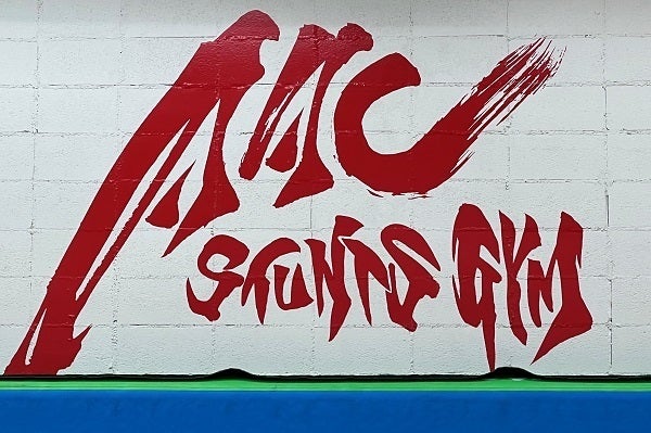 吉田瑞穂さんのデスクワークシーンと大橋明さんの指導中のシーンを撮影いたしました。看板や壁の赤の AAC STUNTS GYM のロゴが力強く目立ちますね。-スタッフより-