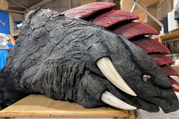 ツエニーのアトリエで、完成品の號羅着ぐるみを受け取りました。各パーツに分かれたセパレートタイプの着ぐるみは、総重量30kg弱の優れ物です。-スタッフより-