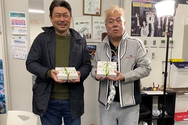 本日は朝から撮影でしたが、日本橋弁松総本店の樋口純一社長よりお昼ごはんに差し入れのお弁当をいただきました。樋口社長、監督、キャストでの記念撮影です。ありがとうございます。ご馳走様でした。-スタッフより-