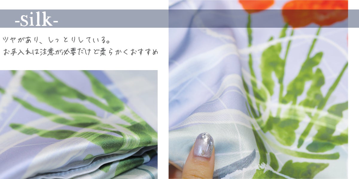 綿、またはシルクより素材をお選びいただけます。