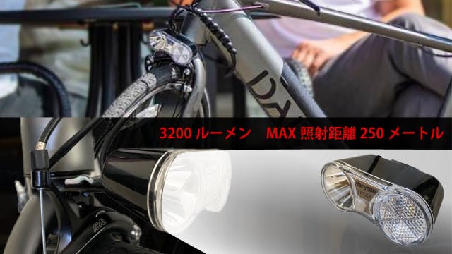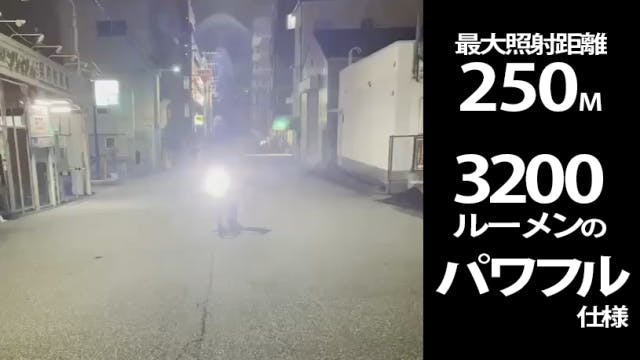 本ライトは3200ルーメンを採用、最大照射距離250メートルで夜間走行中の視界を明るく照らします。