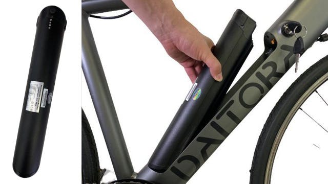 A:LG製高性能リチウムイオンバッテリーとなっております。800回の充電サイクル回数を繰り返した時点で、購入時の最大アシスト走行距離の約半分ほどのアシスト可能距離となり、充電の減りが早くなる見込みがあります。