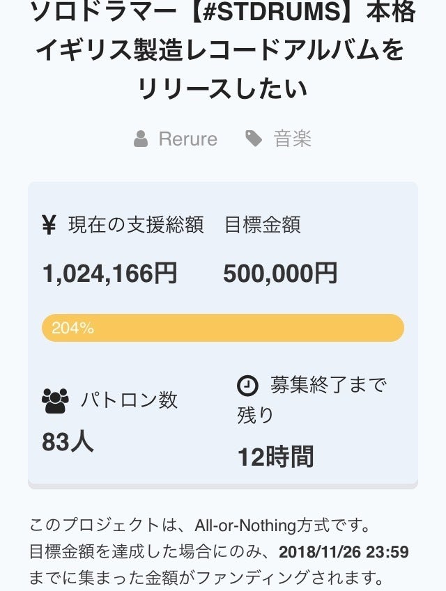 ここまで到達できるとは予想しておりませんでした…ご支援頂いてる皆さま、本当にありがとう御座います!