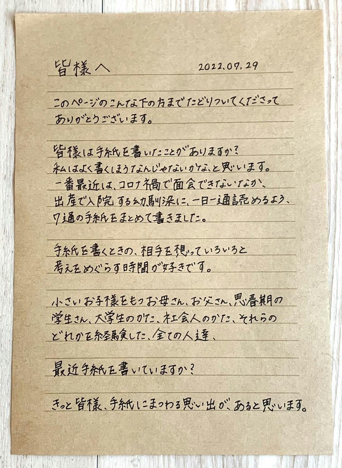 ・時を経て、当時のことを、手紙の差出人にインタビュー。なぜ私たちは、手紙を書くのか。