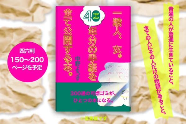 私は現在40歳になる一般人の女で、生きてきた間に貰った手紙300通近くを全て保管しております。300通の本物の手紙という強みを生かした書籍を作ります。