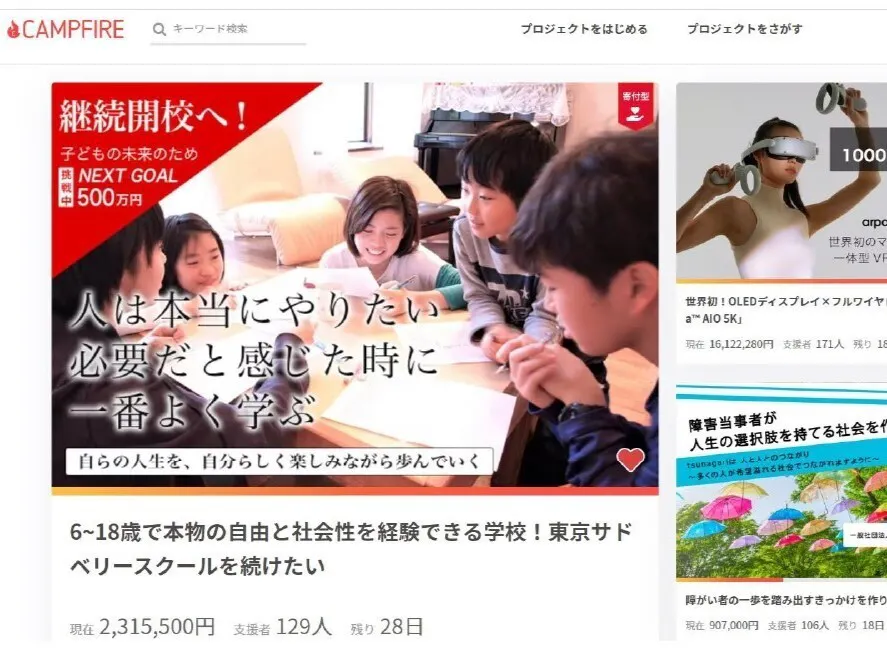 本日、国内最大のクラウドファンディングサイト「CAMPFIRE」のキービジュアルメイン(トップページのメイン)に選んでいただきました!